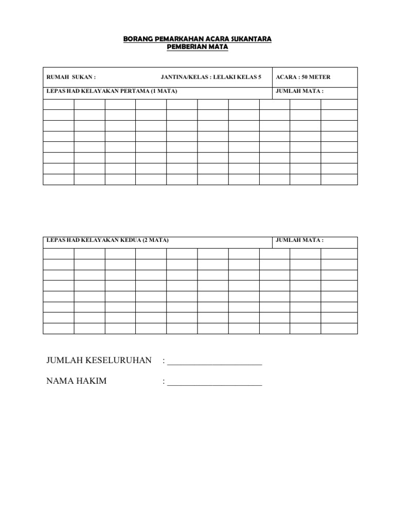 . CONTOH BORANG PELAKSANAAN. MARKAH LI 100 MARKAH DIPEROLEHI BERDASARKAN 30 Jumlah markahmarkah penuh x 30 67 67100 X 30 201. Acara Perseorangan Lelaki dan Wanita.